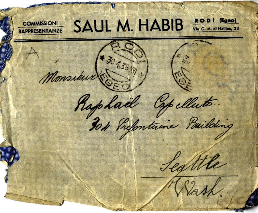 Envelop from Rhodes to Ralph Capeluto in Seattle.